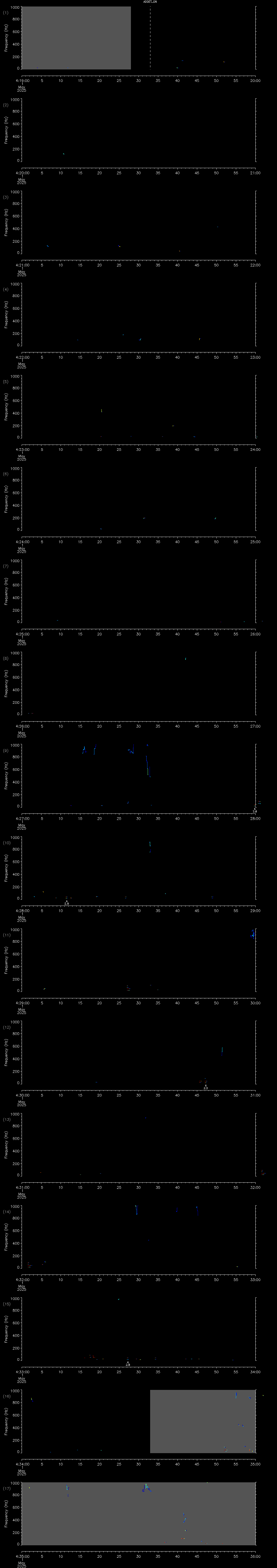 - MUTEON: the hydrophone is muted to assess system noise and to provide a time mark in the audio recording