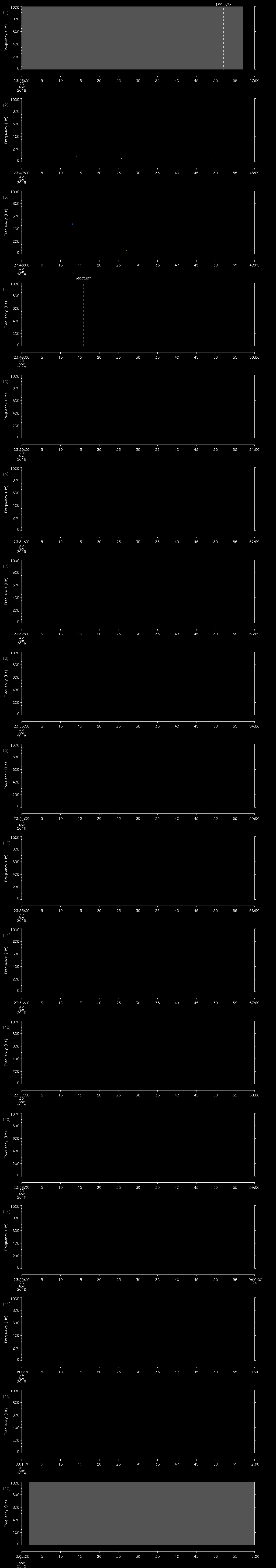 - MUTEON: the hydrophone is muted to assess system noise and to provide a time mark in the audio recording