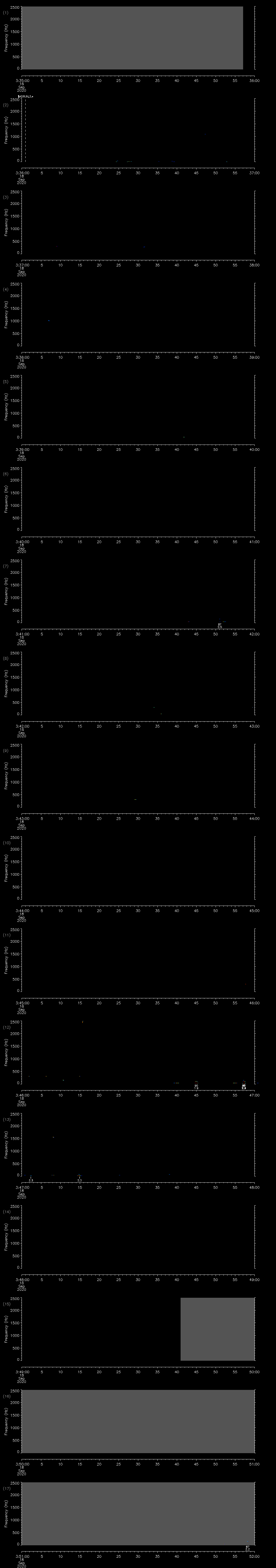 | Date/time | Fin whale | Beluga whale | Bearded seal | Bowhead whale | Walrus | Air gun | Other | Duration |