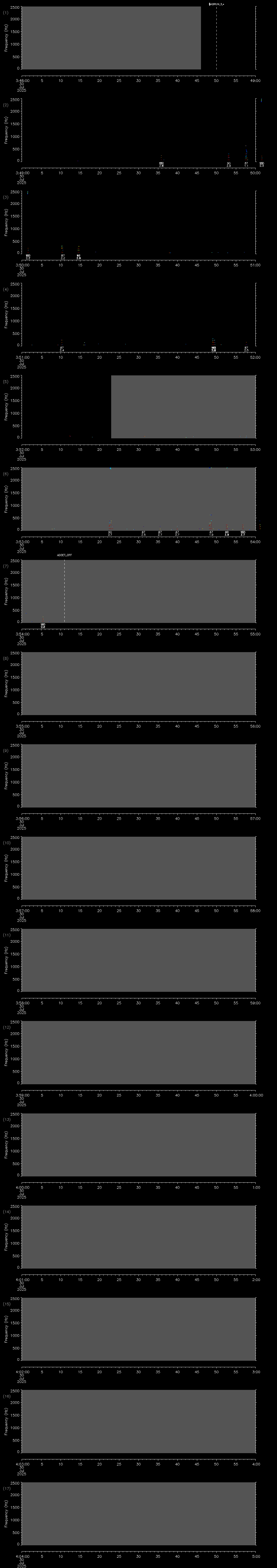 - MUTEON: the hydrophone is muted to assess system noise and to provide a time mark in the audio recording