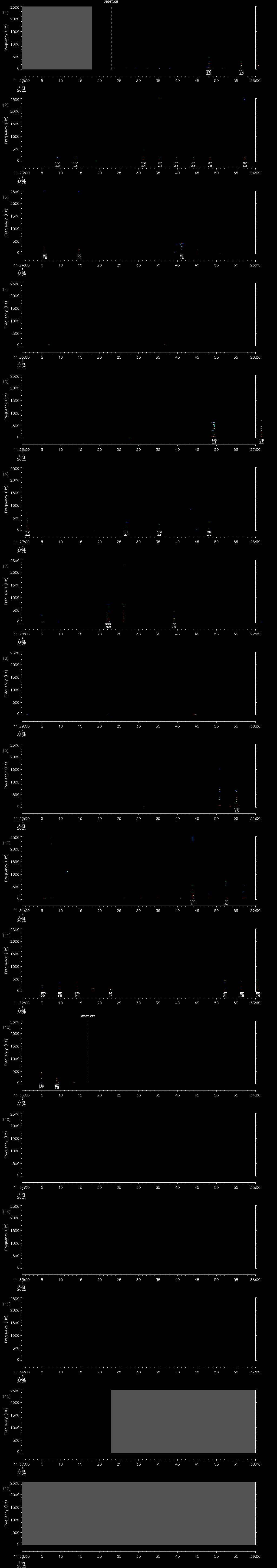 - MUTEON: the hydrophone is muted to assess system noise and to provide a time mark in the audio recording