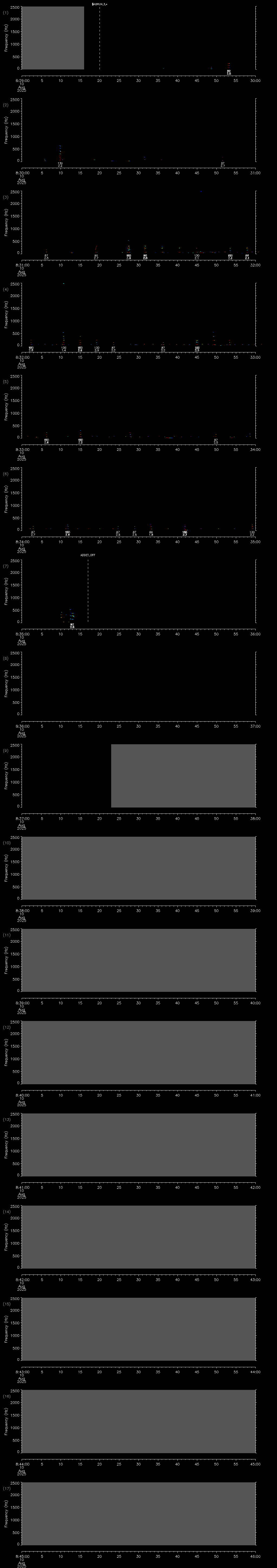 - MUTEON: the hydrophone is muted to assess system noise and to provide a time mark in the audio recording