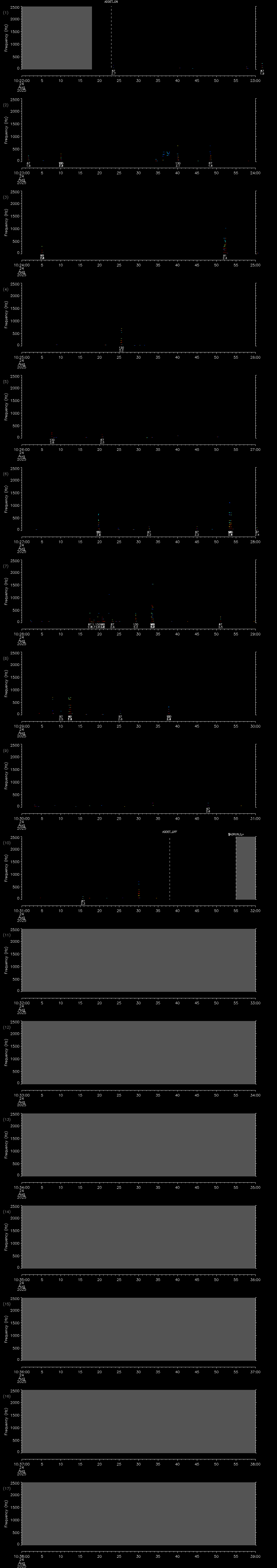 - MUTEON: the hydrophone is muted to assess system noise and to provide a time mark in the audio recording