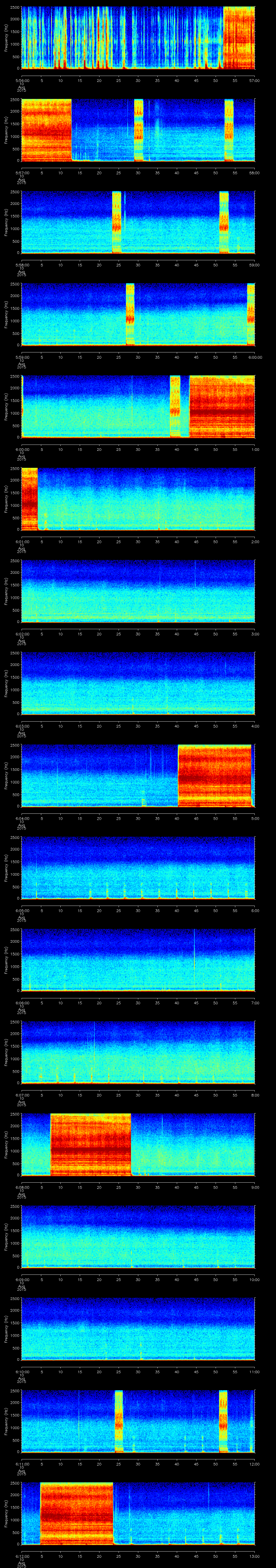 | Date/time | Fin whale | Beluga whale | Bearded seal | Bowhead whale | Walrus | Air gun | Other | Duration |