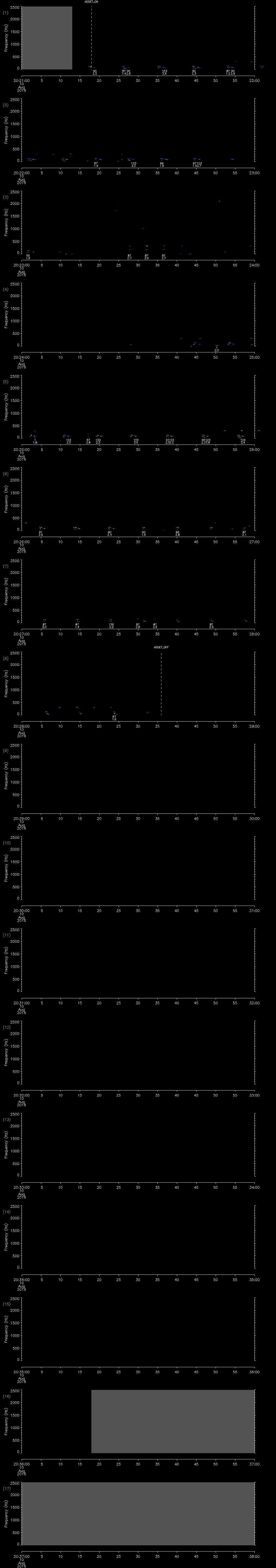 - MUTEON: the hydrophone is muted to assess system noise and to provide a time mark in the audio recording