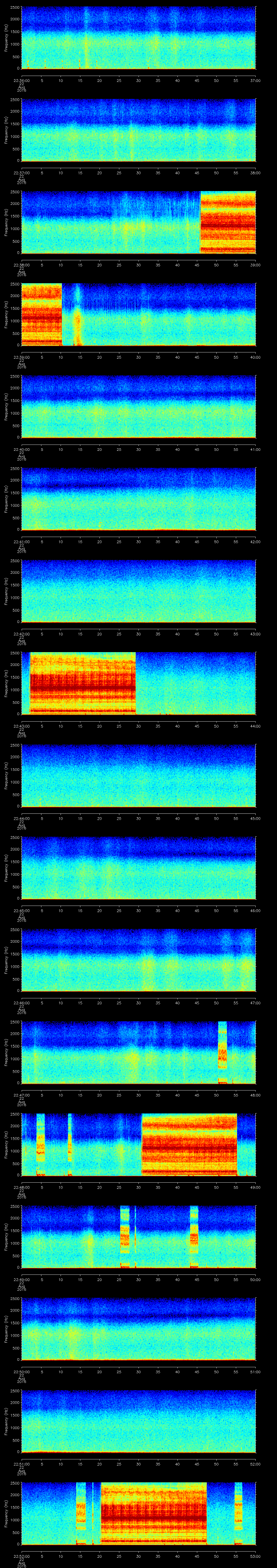 | Date/time | Fin whale | Beluga whale | Bearded seal | Bowhead whale | Walrus | Air gun | Other | Duration |