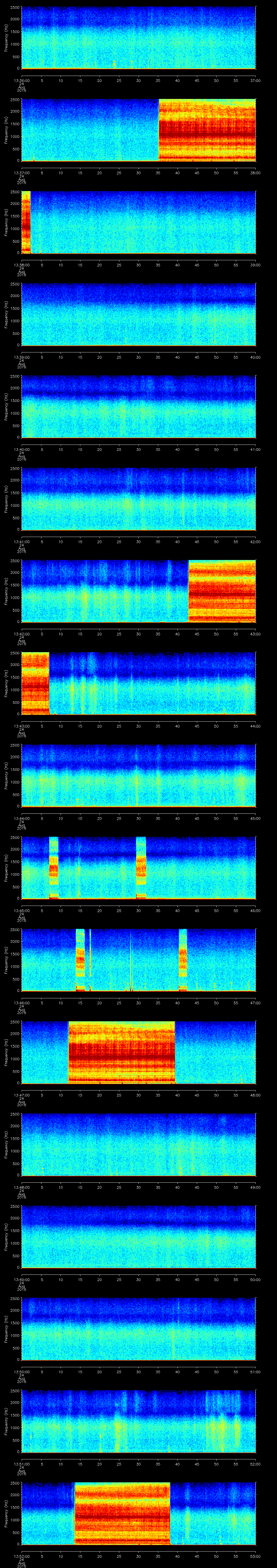 | Date/time | Fin whale | Beluga whale | Bearded seal | Bowhead whale | Walrus | Air gun | Other | Duration |