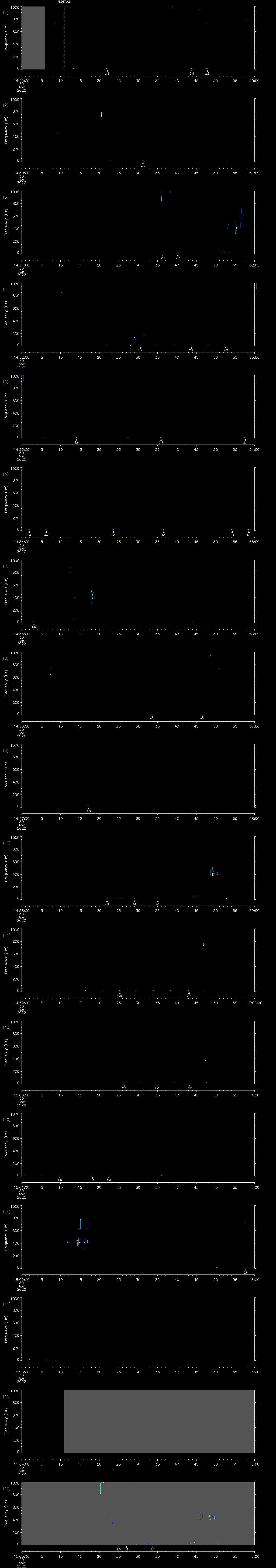 - MUTEON: the hydrophone is muted to assess system noise and to provide a time mark in the audio recording