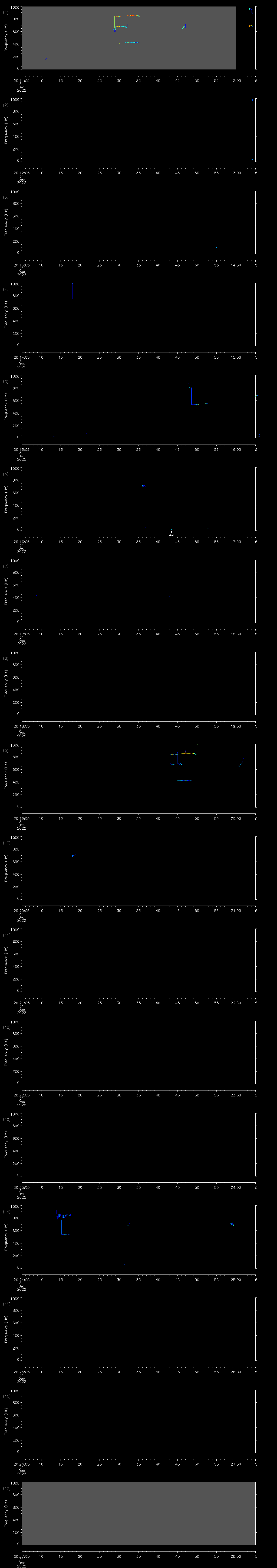 | Date/time | Sei whale | Fin whale | Right whale | Humpback whale | Other | Duration |