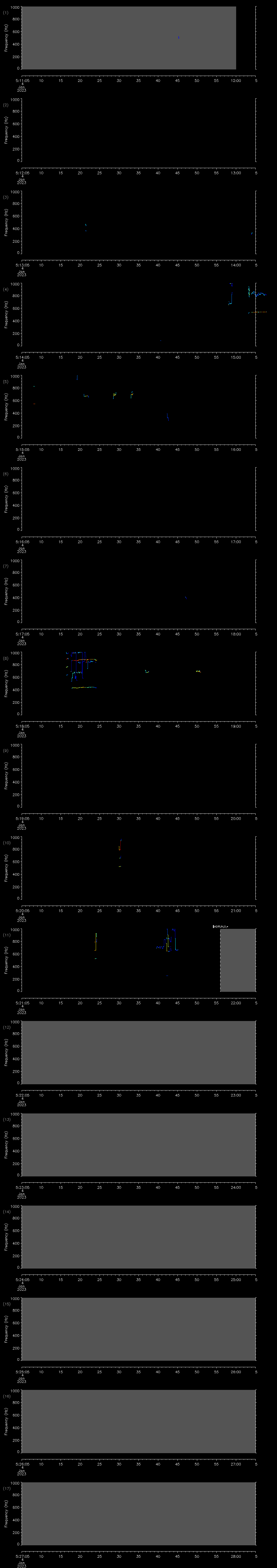 | Date/time | Sei whale | Fin whale | Right whale | Humpback whale | Other | Duration |