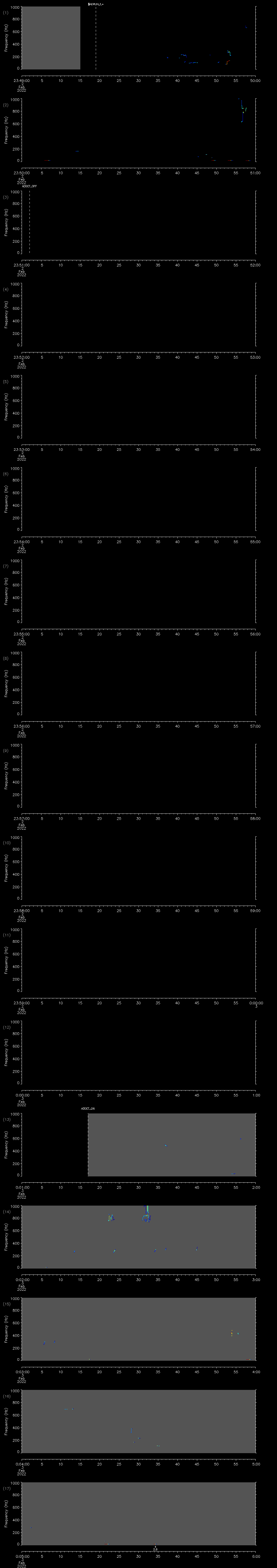 - MUTEON: the hydrophone is muted to assess system noise and to provide a time mark in the audio recording