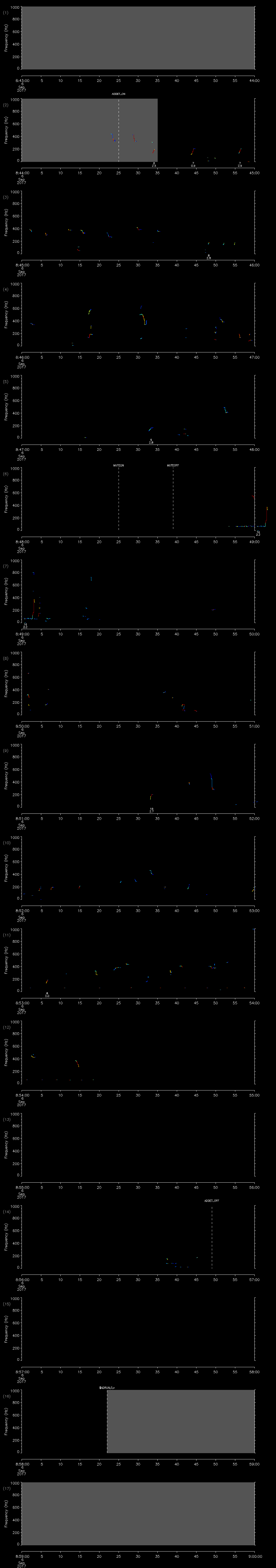 - MUTEON: the hydrophone is muted to assess system noise and to provide a time mark in the audio recording