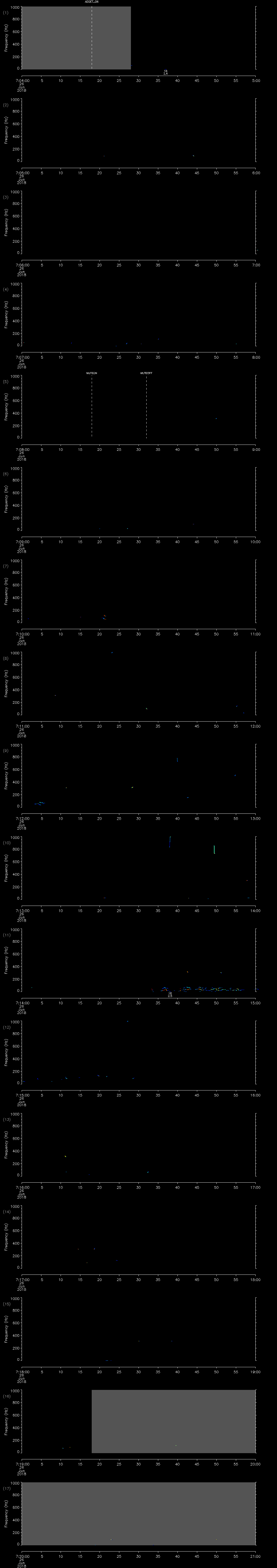 - MUTEON: the hydrophone is muted to assess system noise and to provide a time mark in the audio recording