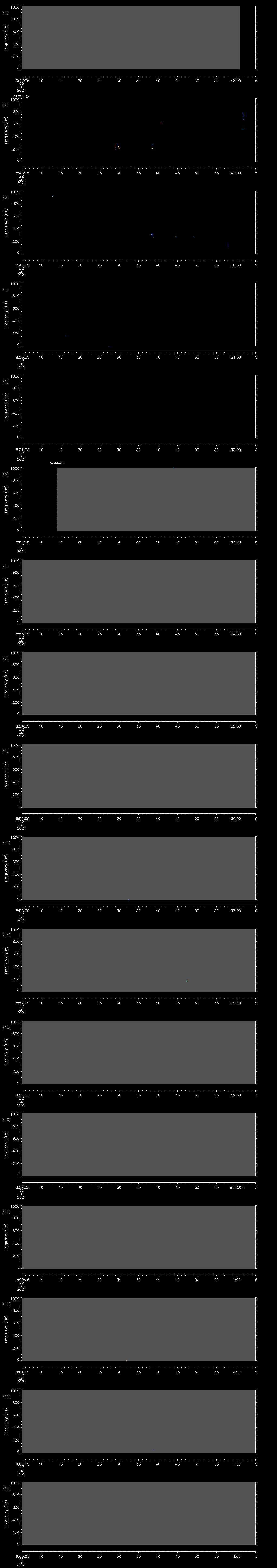 - MUTEON: the hydrophone is muted to assess system noise and to provide a time mark in the audio recording