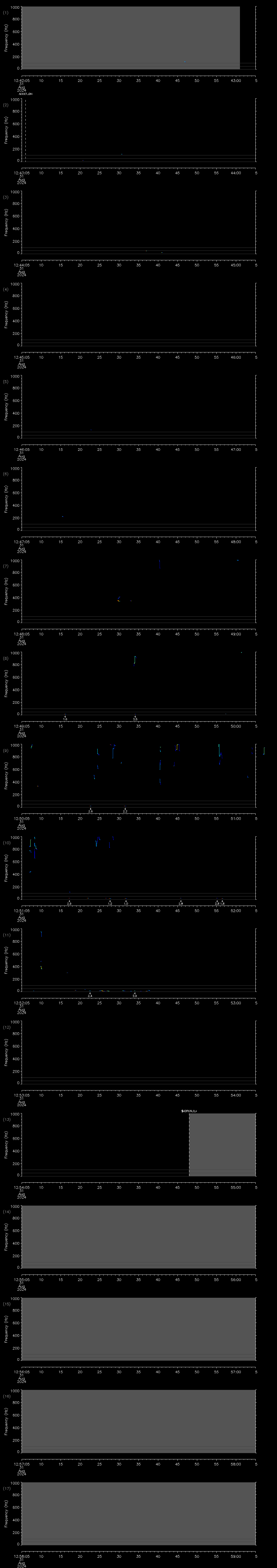 - MUTEON: the hydrophone is muted to assess system noise and to provide a time mark in the audio recording