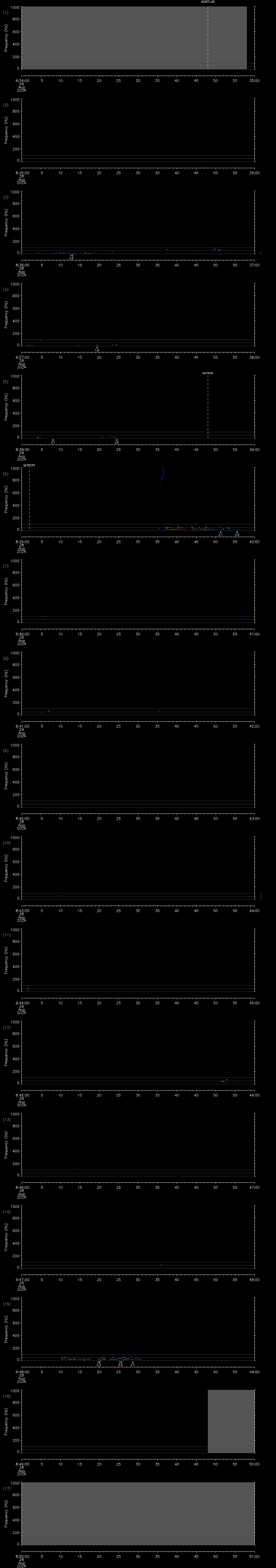 - MUTEON: the hydrophone is muted to assess system noise and to provide a time mark in the audio recording