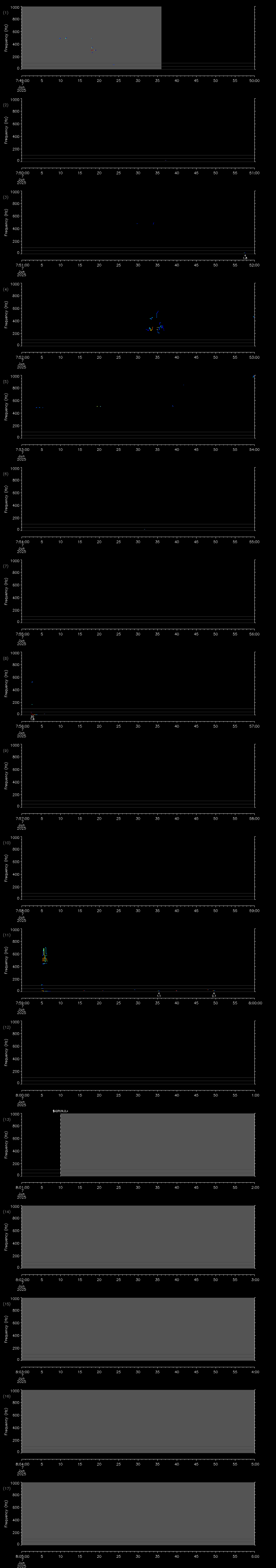 | Date/time | Sei whale | Fin whale | Right whale | Humpback whale | Blue whale | Other | Duration |