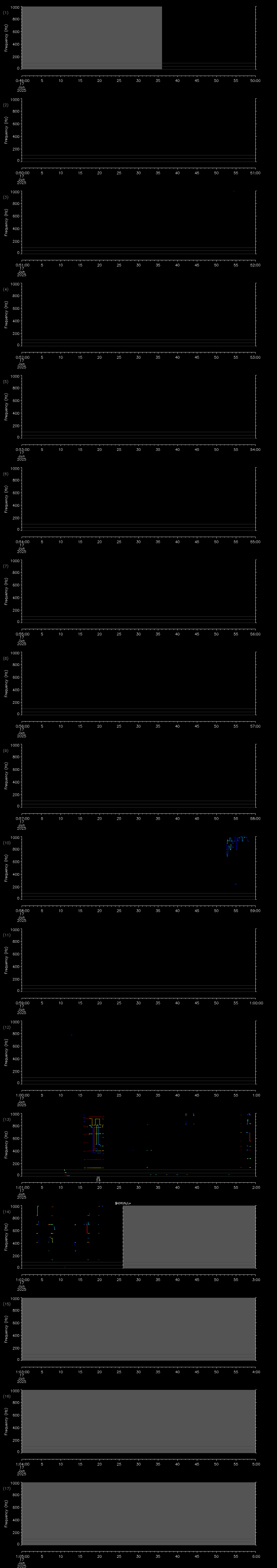 | Date/time | Sei whale | Fin whale | Right whale | Humpback whale | Blue whale | Other | Duration |