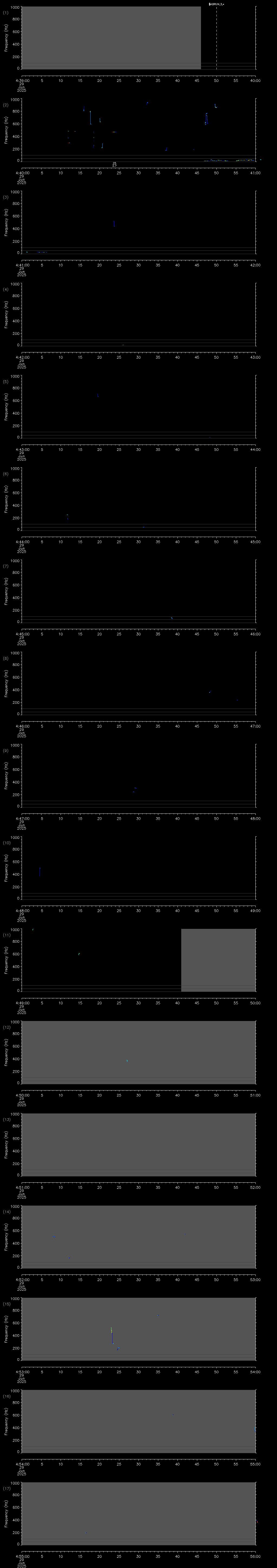 | Date/time | Sei whale | Fin whale | Right whale | Humpback whale | Blue whale | Other | Duration |