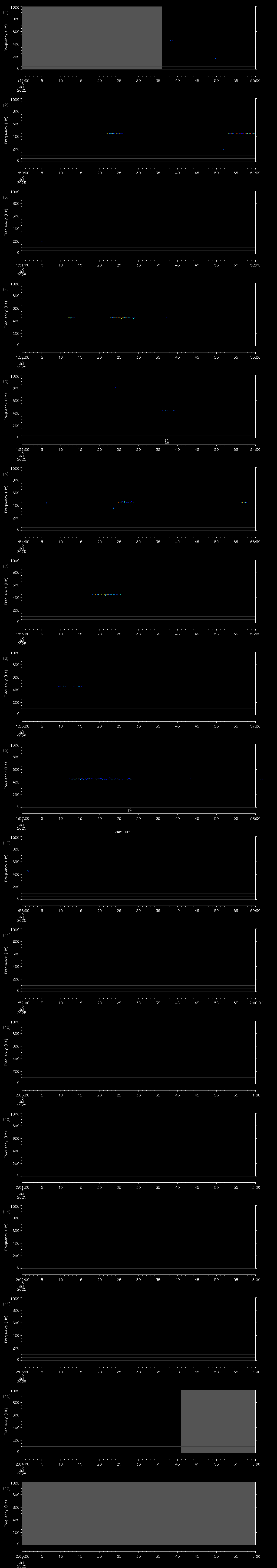 - MUTEON: the hydrophone is muted to assess system noise and to provide a time mark in the audio recording