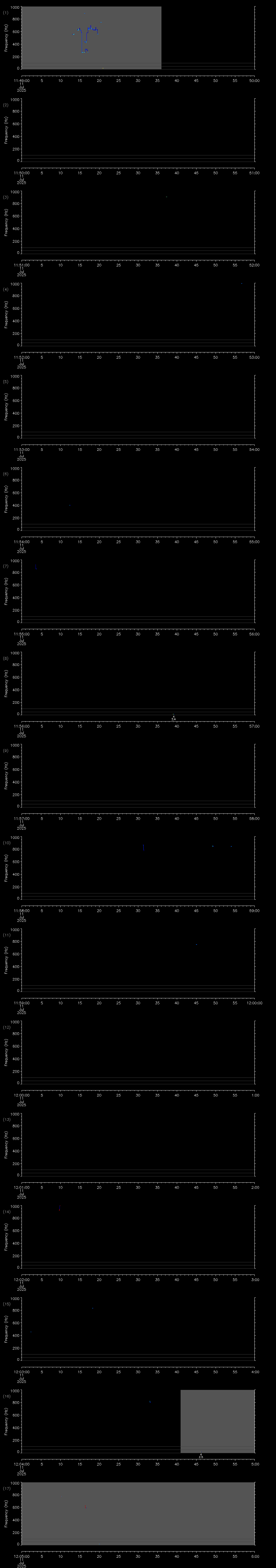 | Date/time | Sei whale | Fin whale | Right whale | Humpback whale | Blue whale | Other | Duration |