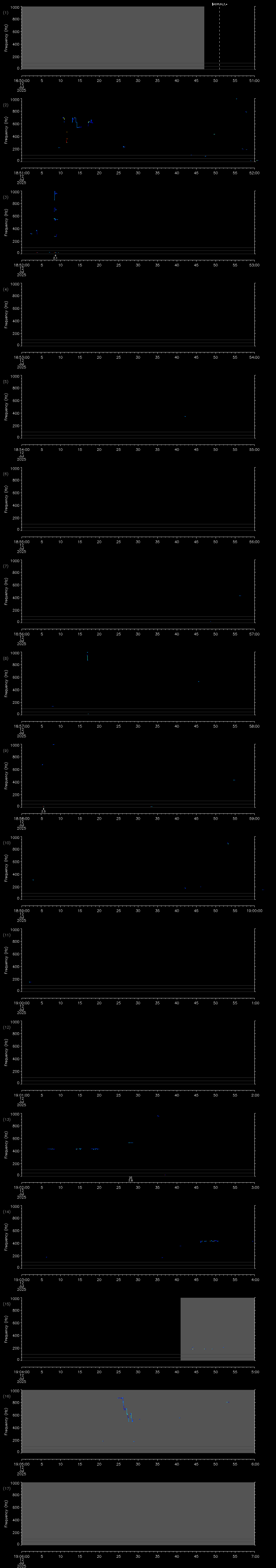 | Date/time | Sei whale | Fin whale | Right whale | Humpback whale | Blue whale | Other | Duration |