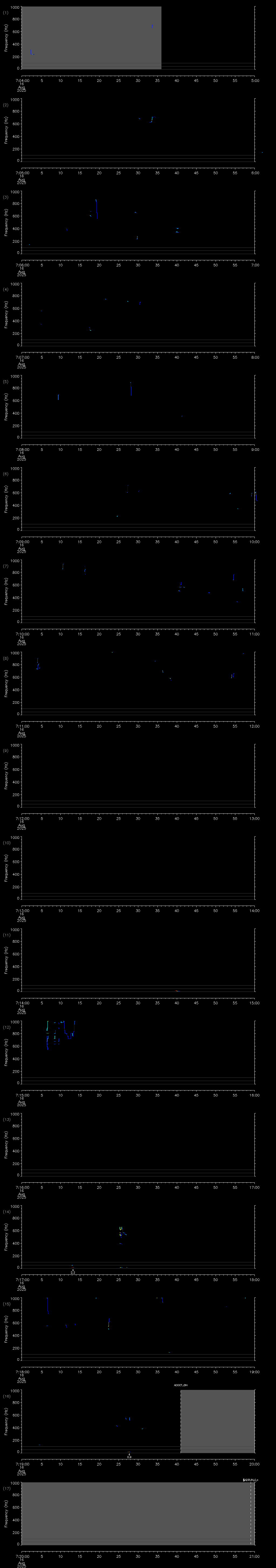 | Date/time | Sei whale | Fin whale | Right whale | Humpback whale | Blue whale | Other | Duration |