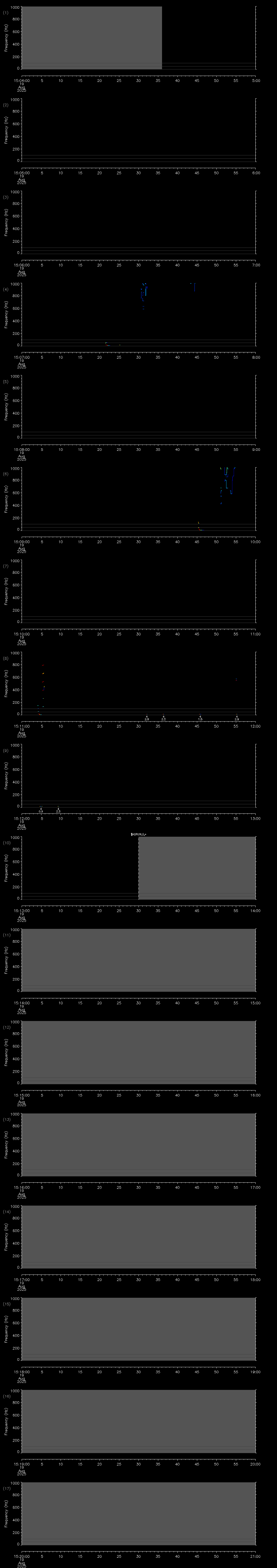 | Date/time | Sei whale | Fin whale | Right whale | Humpback whale | Blue whale | Other | Duration |