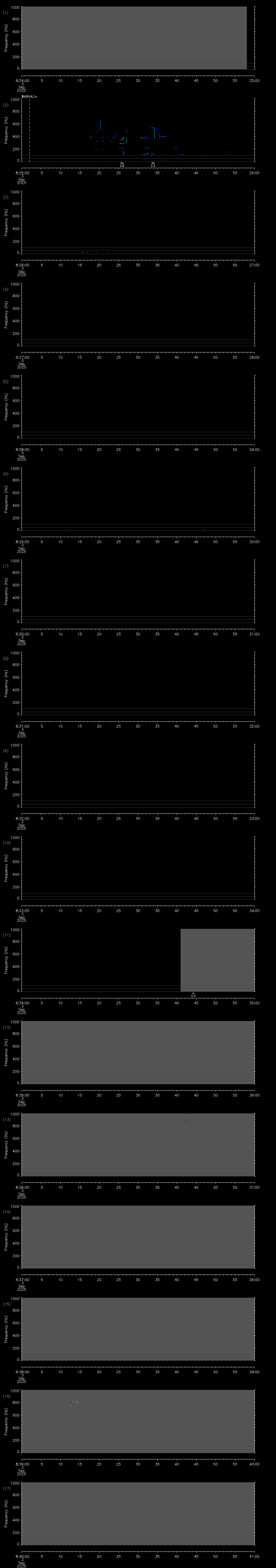 | Date/time | Sei whale | Fin whale | Right whale | Humpback whale | Blue whale | Other | Duration |