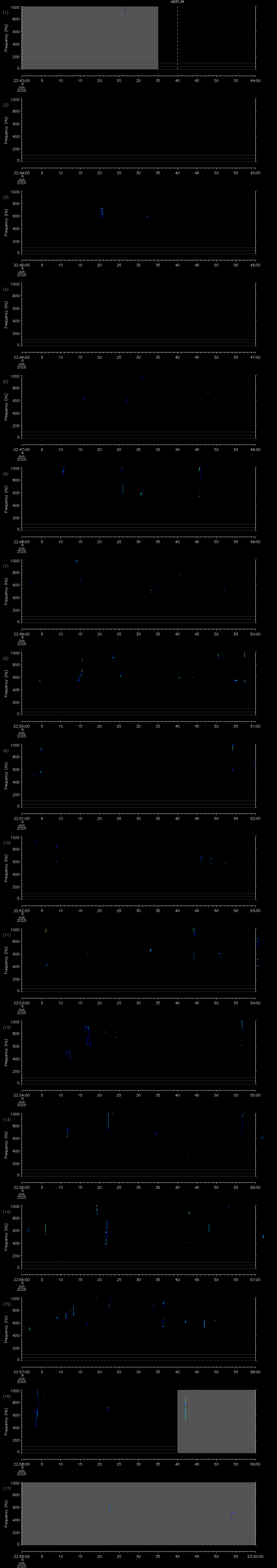 | Date/time | Sei whale | Fin whale | Right whale | Humpback whale | Blue whale | Other | Duration |