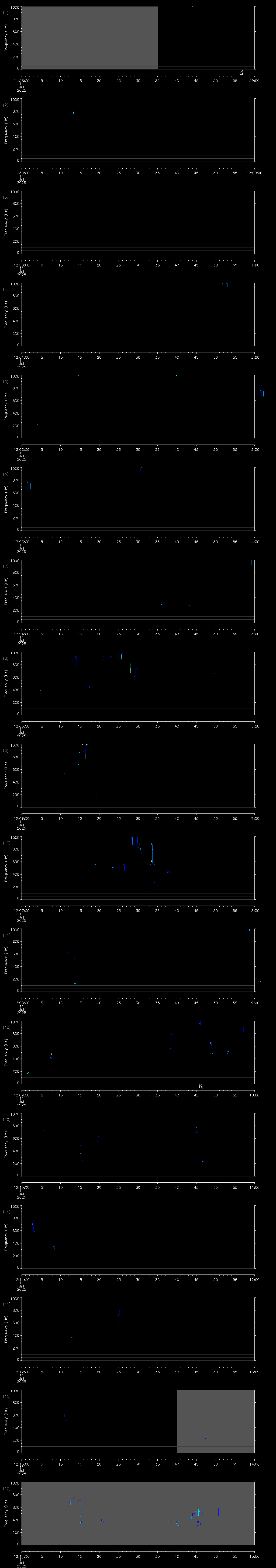 | Date/time | Sei whale | Fin whale | Right whale | Humpback whale | Blue whale | Other | Duration |