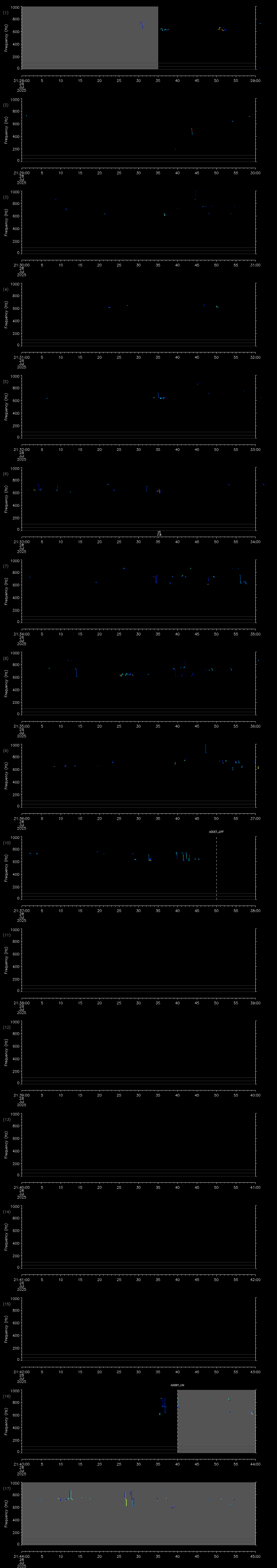 - MUTEON: the hydrophone is muted to assess system noise and to provide a time mark in the audio recording