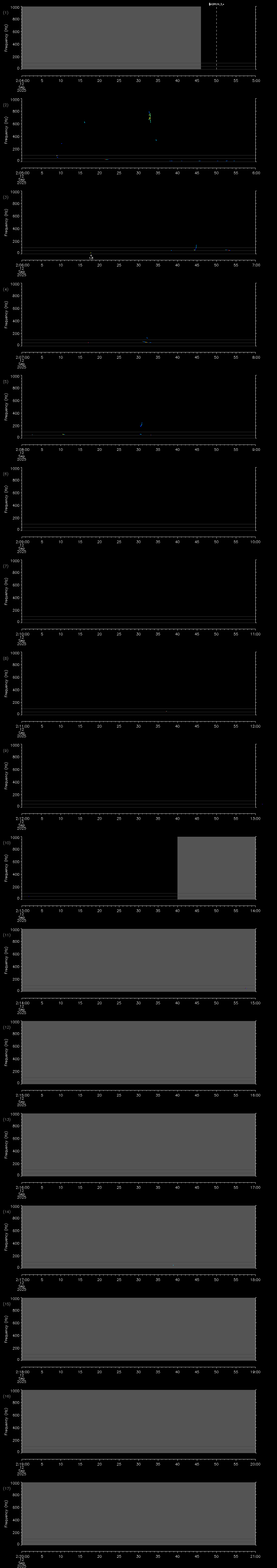 | Date/time | Sei whale | Fin whale | Right whale | Humpback whale | Blue whale | Other | Duration |