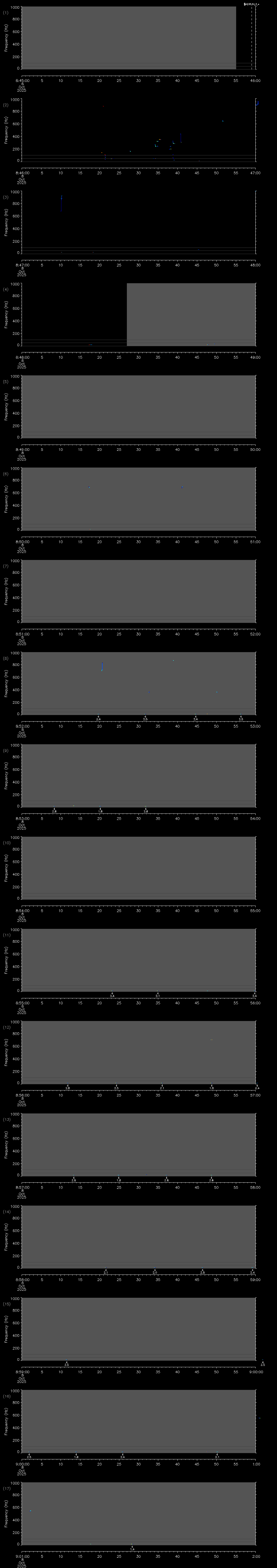 | Date/time | Sei whale | Fin whale | Right whale | Humpback whale | Blue whale | Other | Duration |
