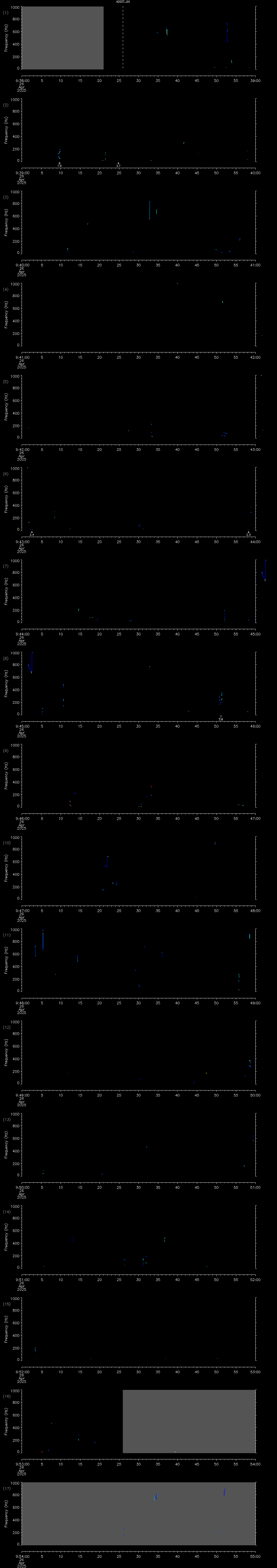 - MUTEON: the hydrophone is muted to assess system noise and to provide a time mark in the audio recording