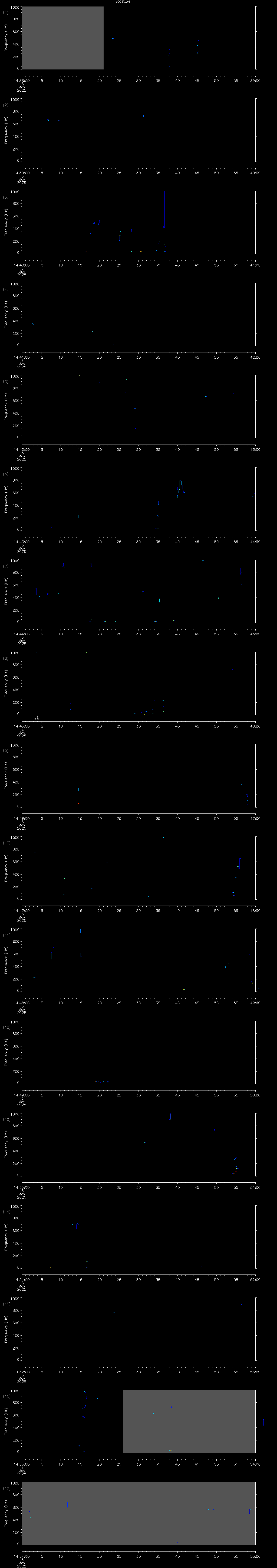 - MUTEON: the hydrophone is muted to assess system noise and to provide a time mark in the audio recording