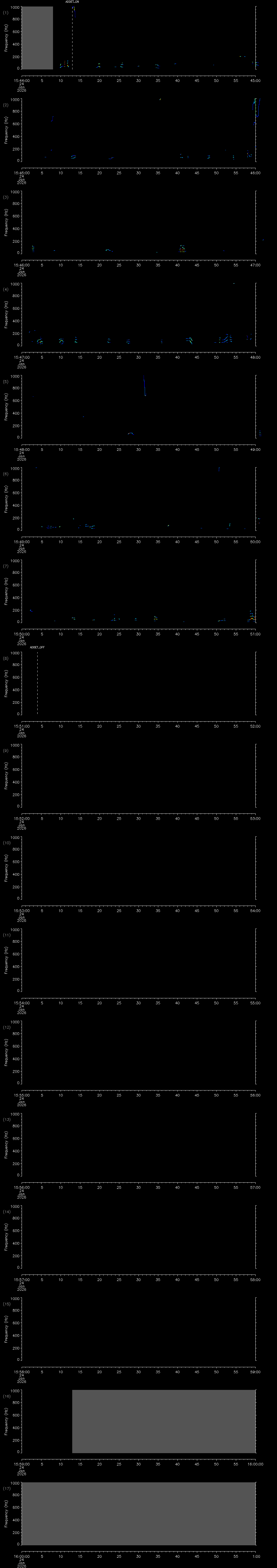 - MUTEON: the hydrophone is muted to assess system noise and to provide a time mark in the audio recording
