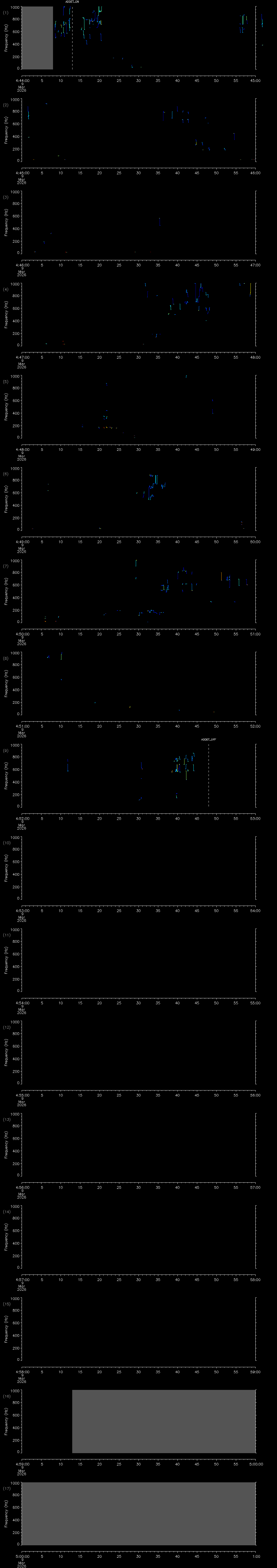 - MUTEON: the hydrophone is muted to assess system noise and to provide a time mark in the audio recording