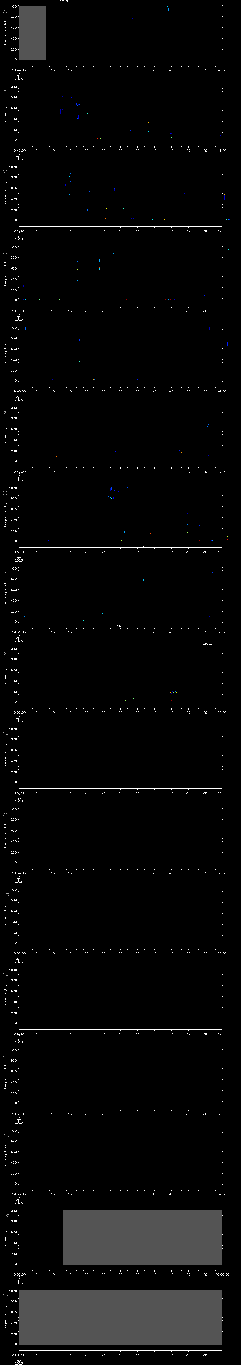 - MUTEON: the hydrophone is muted to assess system noise and to provide a time mark in the audio recording