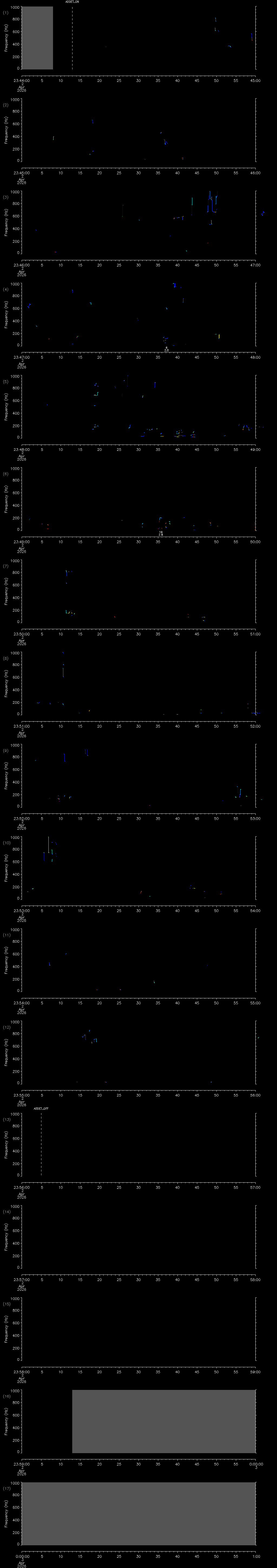 - MUTEON: the hydrophone is muted to assess system noise and to provide a time mark in the audio recording