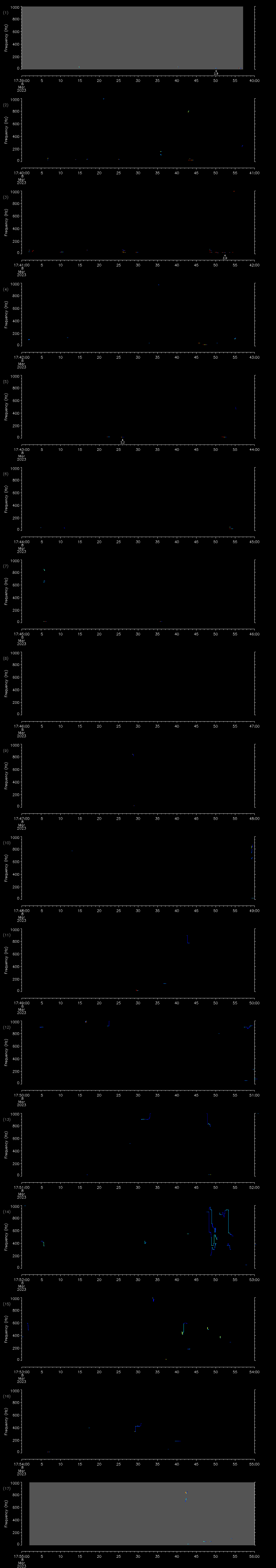 | Date/time | Sei whale | Fin whale | Right whale | Humpback whale | Other | Duration |