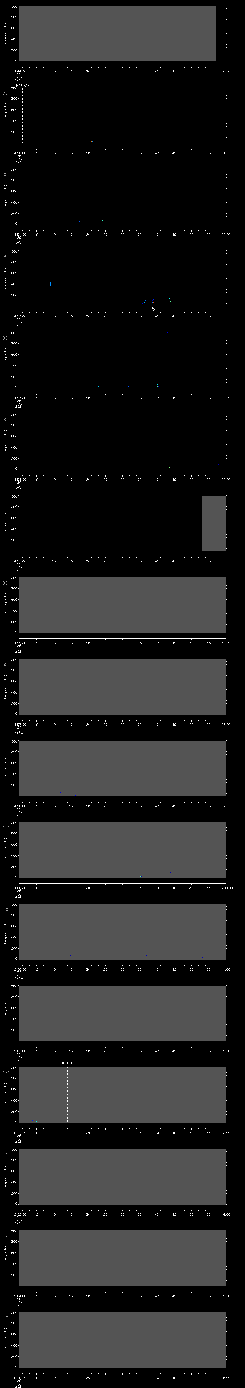 - MUTEON: the hydrophone is muted to assess system noise and to provide a time mark in the audio recording