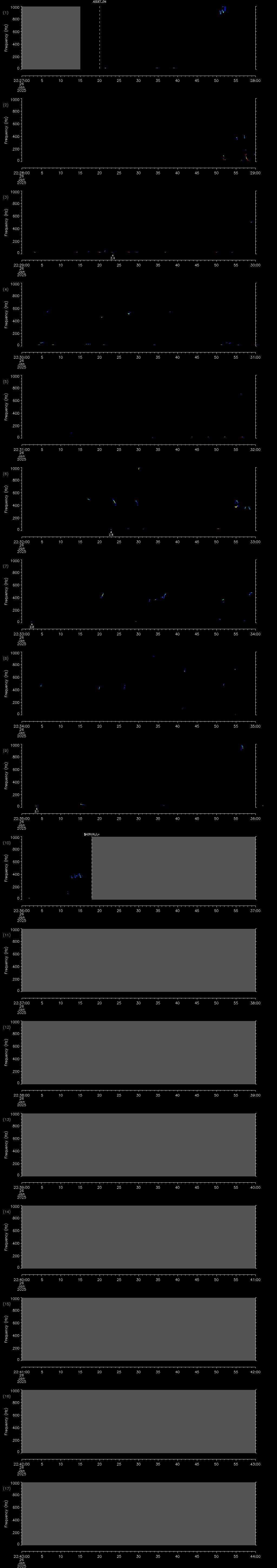 - MUTEON: the hydrophone is muted to assess system noise and to provide a time mark in the audio recording