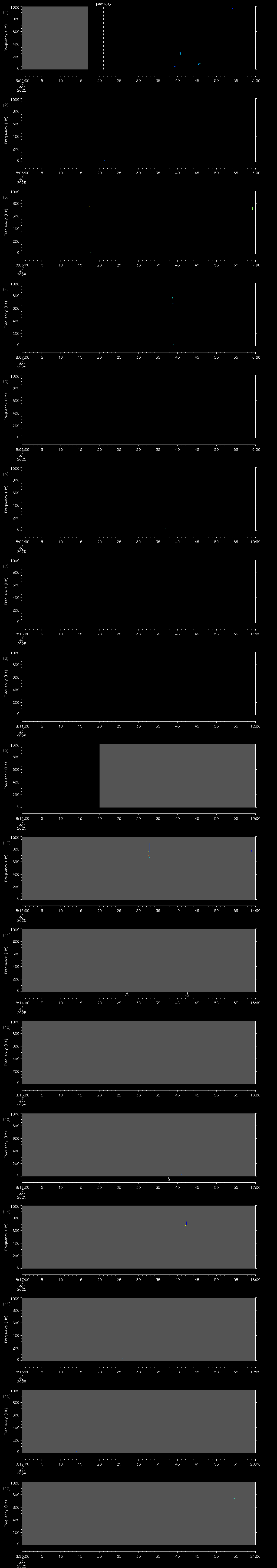 | Date/time | Sei whale | Fin whale | Right whale | Humpback whale | Other | Duration |