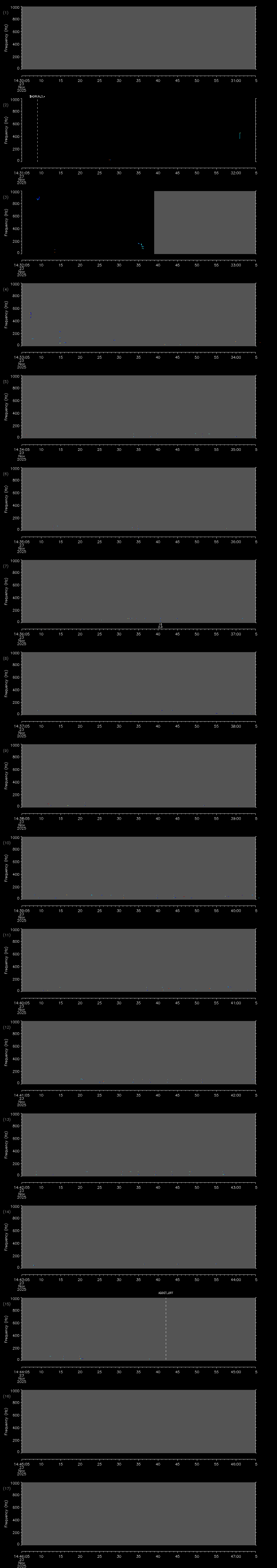 - MUTEON: the hydrophone is muted to assess system noise and to provide a time mark in the audio recording