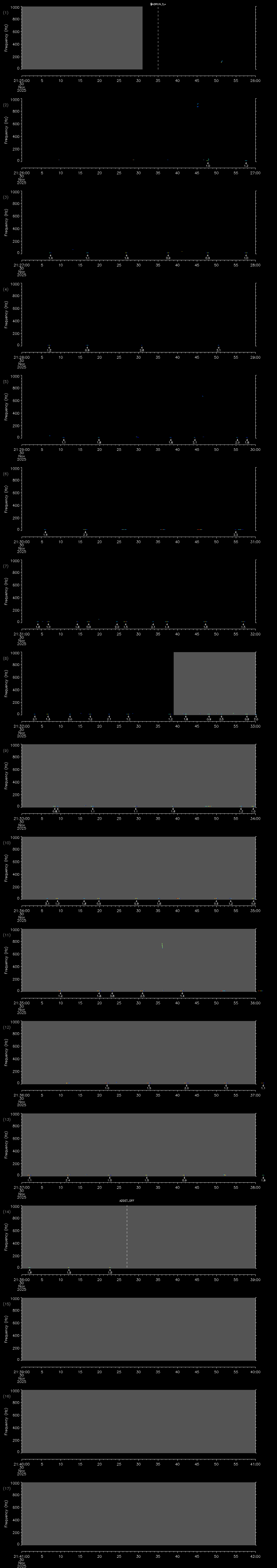 - MUTEON: the hydrophone is muted to assess system noise and to provide a time mark in the audio recording