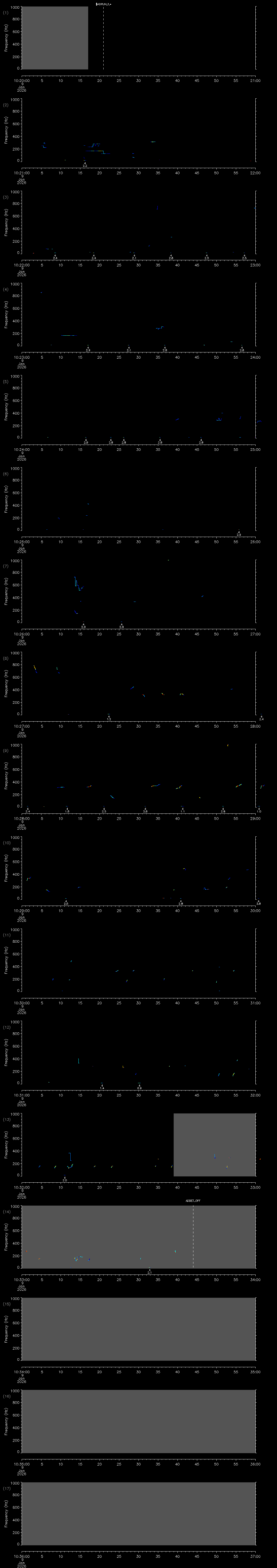 - MUTEON: the hydrophone is muted to assess system noise and to provide a time mark in the audio recording