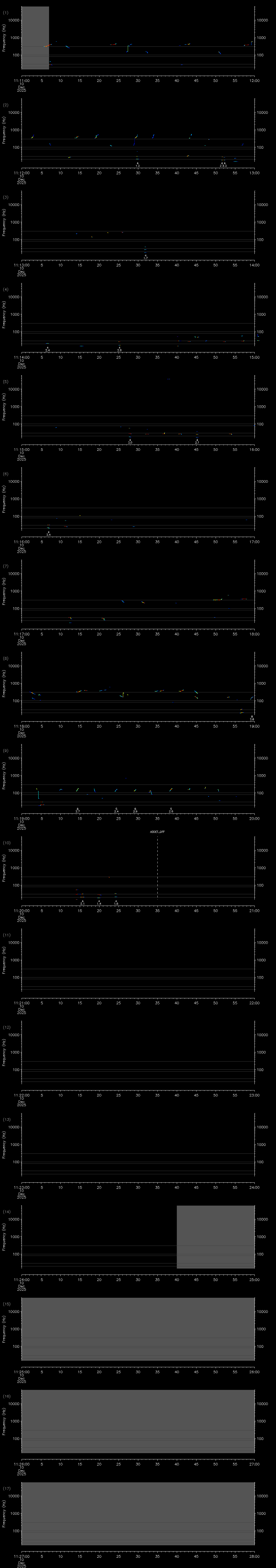 - MUTEON: the hydrophone is muted to assess system noise and to provide a time mark in the audio recording