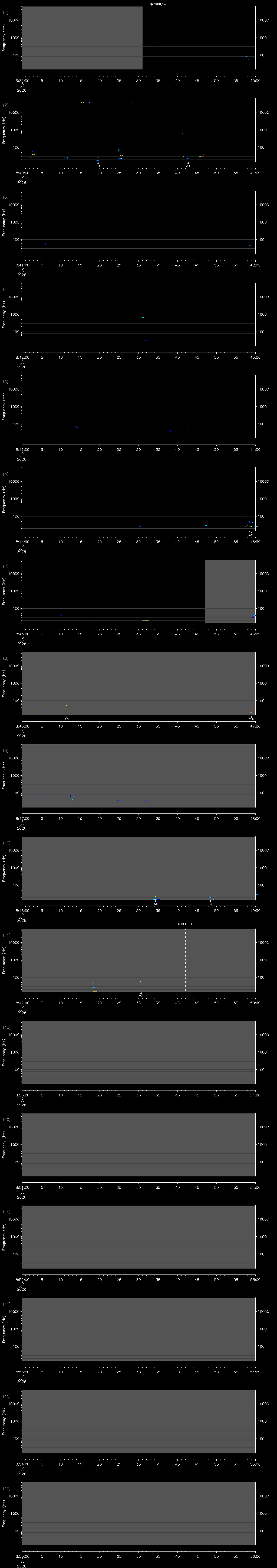 - MUTEON: the hydrophone is muted to assess system noise and to provide a time mark in the audio recording