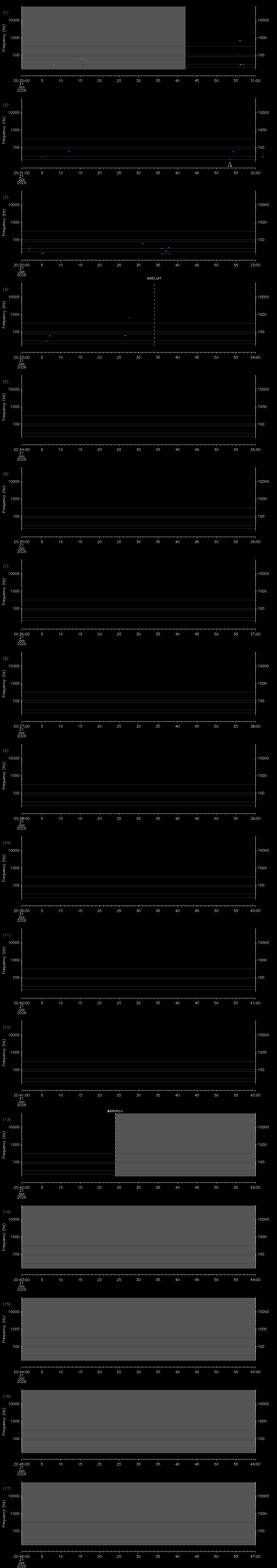 - MUTEON: the hydrophone is muted to assess system noise and to provide a time mark in the audio recording